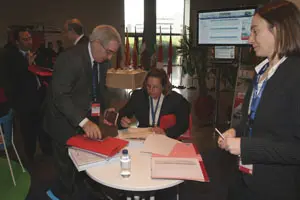 Álvaro Álvarez-Blázquez, en el centro, con representantes de las asociaciones de empresarios gallegos en el exterior.