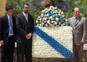 Óscar Vila Martínez, Alejandro Vázquez Barbazán y Antonio Piñón Martín, secretario de Relaciones Públicas, tesorero y presidente de la HGV, respectivamente, colocaron la ofrenda en nombre de la Junta Directiva.