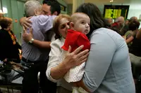 Hasta los más pequeños estuvieron en Lavacolla recibiendo a los participantes en 'Reencontros'.