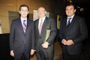 Núñez Feijó, Juan Ramón Quintás y Javier Guerra, durante la entrega del galardón.