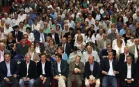 Feijóo, junto a Mauricio Macri, sentado en la primera fila, con otros dirigentes del PP como Prada o Camba.