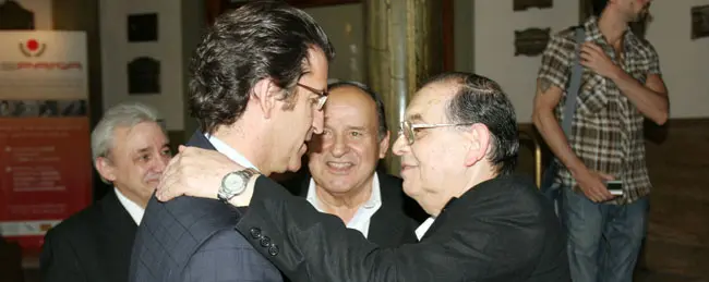 El presidente del PP de Galicia saludando a García Melle, presidente del PP argentino.