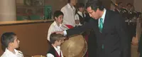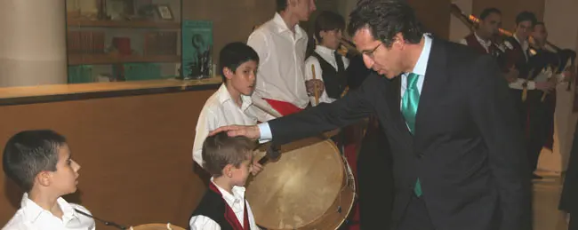El presidente del PPdeG se mostró muy cariñoso con los miembros del grupo de gaitas.
