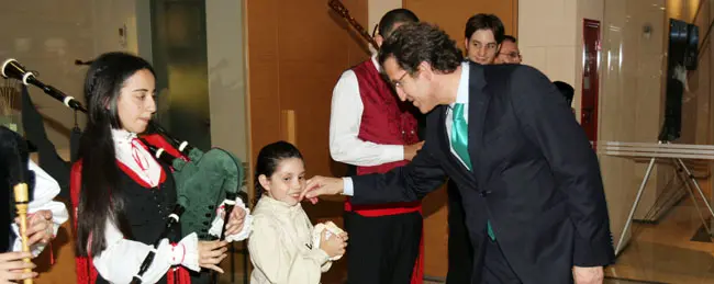 El grupo de gaitas del Centro Galicia recibió a Núñez Feijóo.