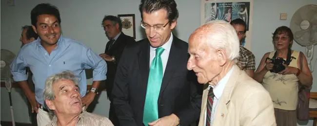 Núñez Feijóo, saludando a unos paisanos del Centro Galicia.