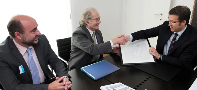 Pérez Esquivel también fue recibido por el presidente de la Deputación de Pontevedra, Rafael Louzán.