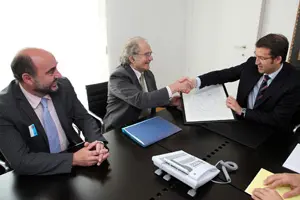 Pérez Esquivel también fue recibido por el presidente de la Deputación de Pontevedra, Rafael Louzán.