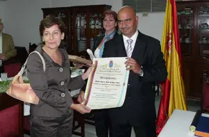 Rubio recibe un reconocimiento a su labor en la visita a la Hermandad Gallega de Venezuela.