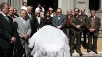 Dos gaiteros interpretan el himno gallego a la salida del féretro.