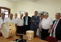Los directivos del Centro Pontevedrés, con los nuevos instrumentos.