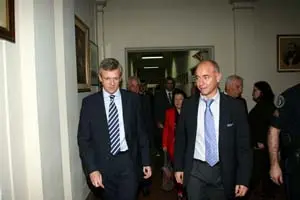 Alfonso Rueda y Santiago Camba recorren las instalaciones del Centro Gallego de Buenos Aires.