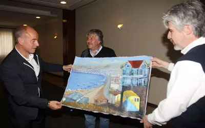 Los hermanos Pinto le regalaron un cuadro de la ciudad.