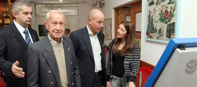 Alenjandra Marcote muestra a Camba la escuela de computación del Centro Gallego de Jubilados y Pensionistas de Avellaneda.