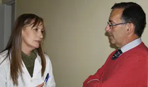 Pérez López conversa con la directora médica, Mirta Sáez.