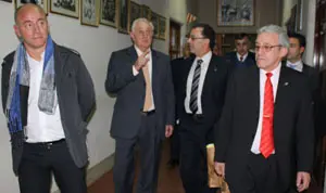 Roberto Pérez y Pablo Torres saliendo de la reunión.