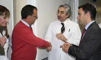 Roberto Pérez saluda al jefe de obstetricia, Ferreirós.