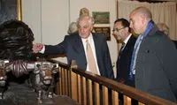 Camba y Pérez observan las reliquias que guarda el Centro Gallego.