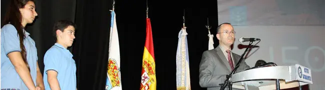 Jesús Vázquez, durante el acto conmemorativo del 150º aniversario de ‘Cantares Galegos’ de Rosalía en el Colegio Santiago Apóstol.