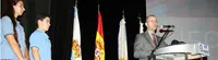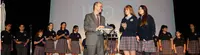Alumnos del Instituto Santiago Apóstol entregan un presente al conselleiro de Educación.