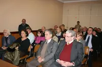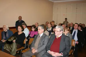 Presidentes y representantes de los centros que integran la Unión, escuchan con atención la exposición de Camba.