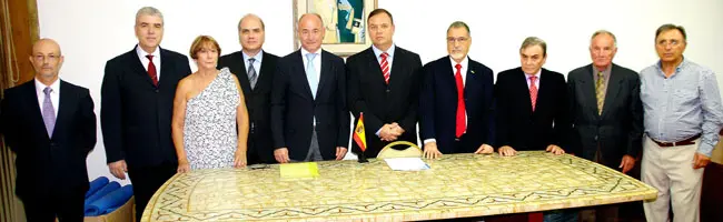 Santiago Camba, con los directivos de la Casa de Espanha de Río, durante el acto de la firma del convenio.