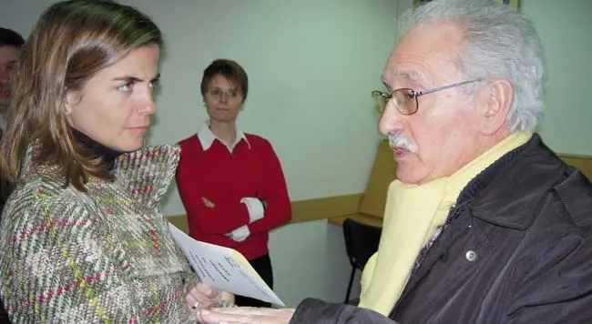 Victoria Cristóbal escucha las explicaciones del madrileño Antonio García.
