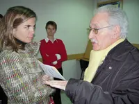Victoria Cristóbal escucha las explicaciones del madrileño Antonio García.