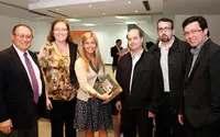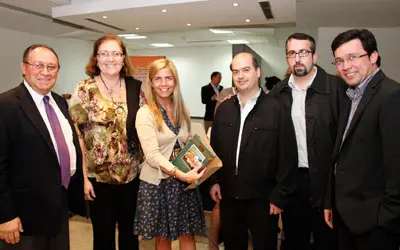 La directora de la AME, junto a Juan Suárez, vicepresidente de la HGV; Aníbal Julio Jiménez, cónsul general de España; Javier Grande, presidente de la peña ‘Los Gatos’, y Felisindo López, presidente del PP en Venezuela.