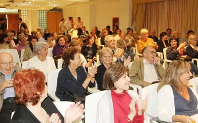 Parte de los asistentes al acto con la directora de la Agencia Madrileña para la Emigración.