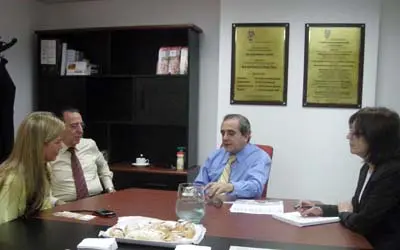 Victoria Cristóbal, en la reunión en la sede de la FES con Emeterio González Pérez, Francisco González Otero y Josefina Benítez, tesorero, presidente y secretaria general de la FES, respectivamente.