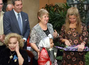 Victoria Cristóbal y Rosita Fornés con algunos asistentes a la celebración.