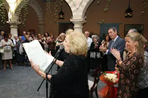 Victoria Cristóbal recibió un obsequio con motivo de su tercer aniversario al frente de la Agencia Madrileña para la Emigración.