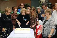 Rosita Fornés cortó la tarta de los cumpleaños colectivos trimestrales de los asociados.