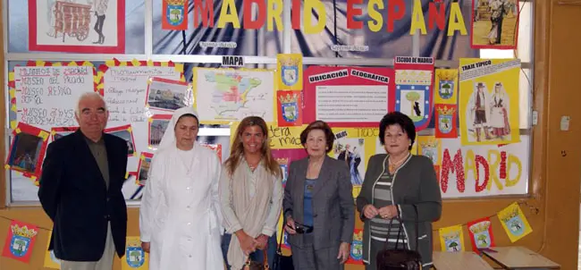 Victoria Cristóbal acompañada por Juan Pablo Uriarte, la madre Josefina, Rosario Melero y Pilar Ruíz, directivos del Hogar Español, durante su visita al centro.