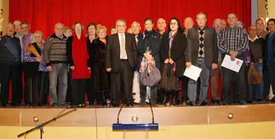 Victoria Cristóbal y Luis Iglesias, durante la clausura de la primera Asamblea de la Casa de Madrid en Francia.