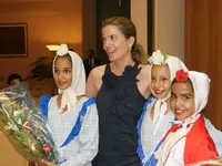 Victoria Cristóbal recibió un ramo de flores en su encuentro con la colectividad madrileña en Santiago de Chile, el pasado mes de julio.