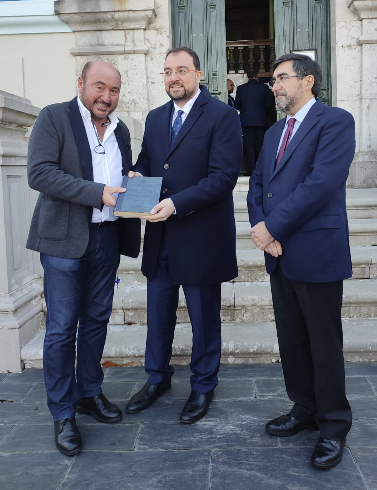 Coincidiendo con la inauguración del Pleno del Consejo General de la Ciudadanía Española en el Exterior (CGCEE), el director de ‘Crónicas de la Emigración’, Luis Vaamonde, entregó ‘El Libro del Centro Asturiano de La Habana. 1886-1927’ al director del Museo de la Emigración asturiana, Santiago González, en presencia del presidente del Principado, Adrián Barbón, quien mostró su interés por el libro.