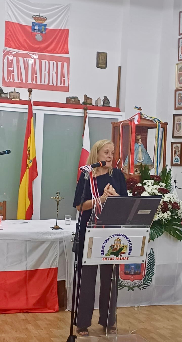 Durante el pregón de las fiestas en honor a la Virgen Bien Aparecida, patrona de Cantabria, la consejera ha trasladado un mensaje de cercanía y gratitud a los cántabros residentes en Canarias, a quienes ha agradecido “mantener viva la llama de nuestra tierra a miles de kilómetros”.