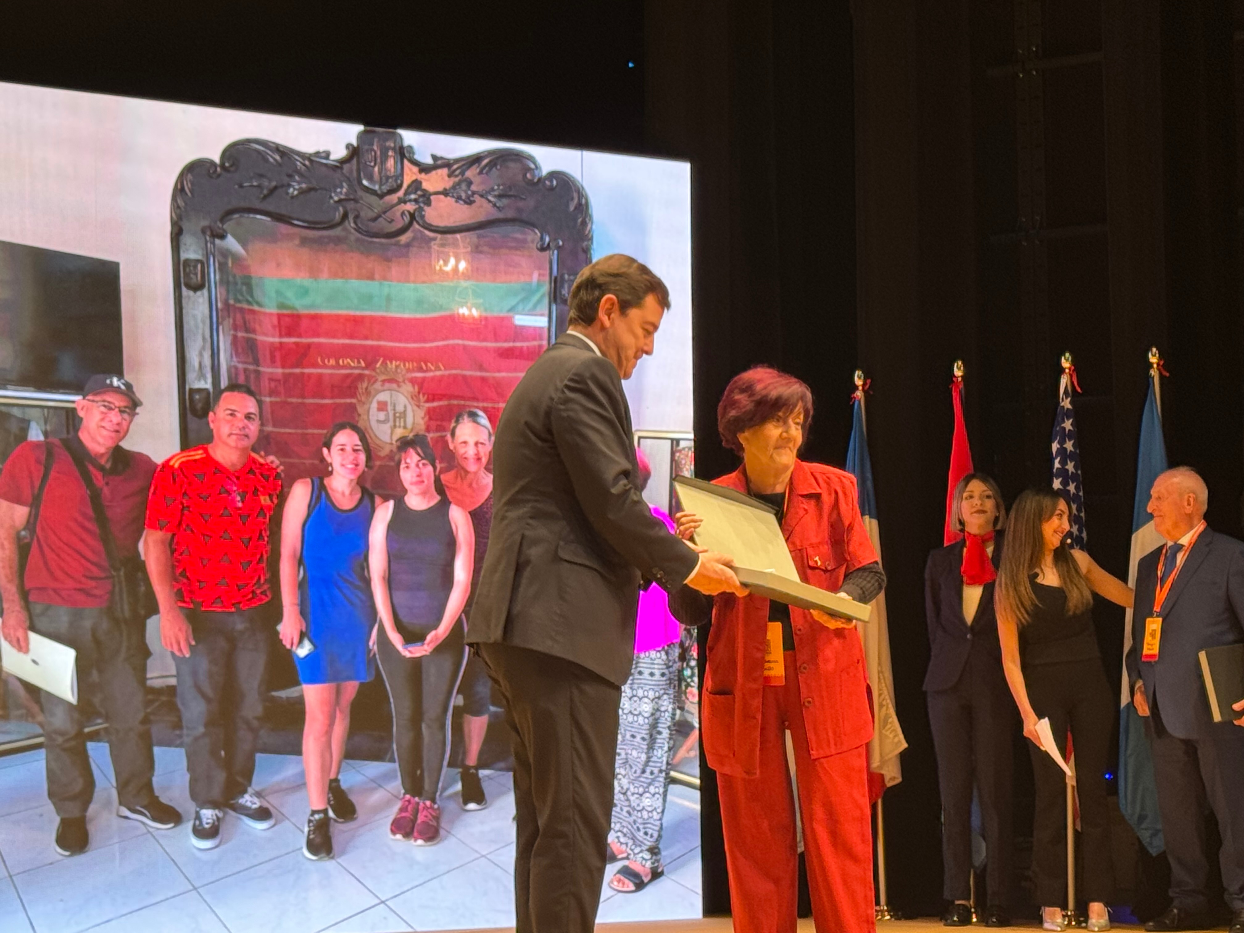 Uno de los momentos más emotivos del III Congreso Internacional de Centros de Castellanos y Leoneses en el Exterior se vivió con la entrega del I Premio Castilla y León en el Exterior a Pedro Bello; Andoni Paredes; la Casa de Salamanca en Leganés, representada por Joaquín Villarón; y la Colonia Zamorana en Cuba, presidida por María Antonio Rabanillo, encargada de recoger el premio.