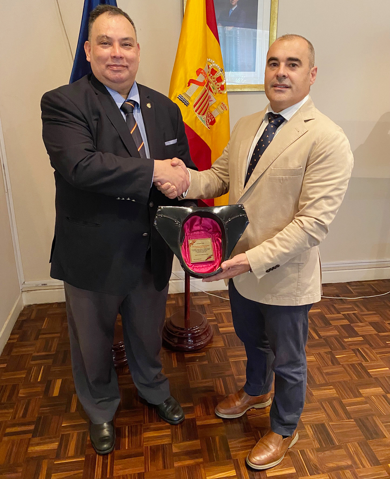 En este sentido, Barreiro dedicó unas palabras al teniente coronel: “Agradecer a nuestro agregado de Interior por todo tu impecable trabajo desarrollado en el país, y por esta distinción de considerarme tu amigo, la cual es mutua, y desearte tanto a ti, como a Iliana, tu señora esposa, y a Santiago y Pilar, tus hijos, el mayor de los éxitos y satisfacciones en tu nuevo destino. De veras muchas gracias por todo”, concluyó.