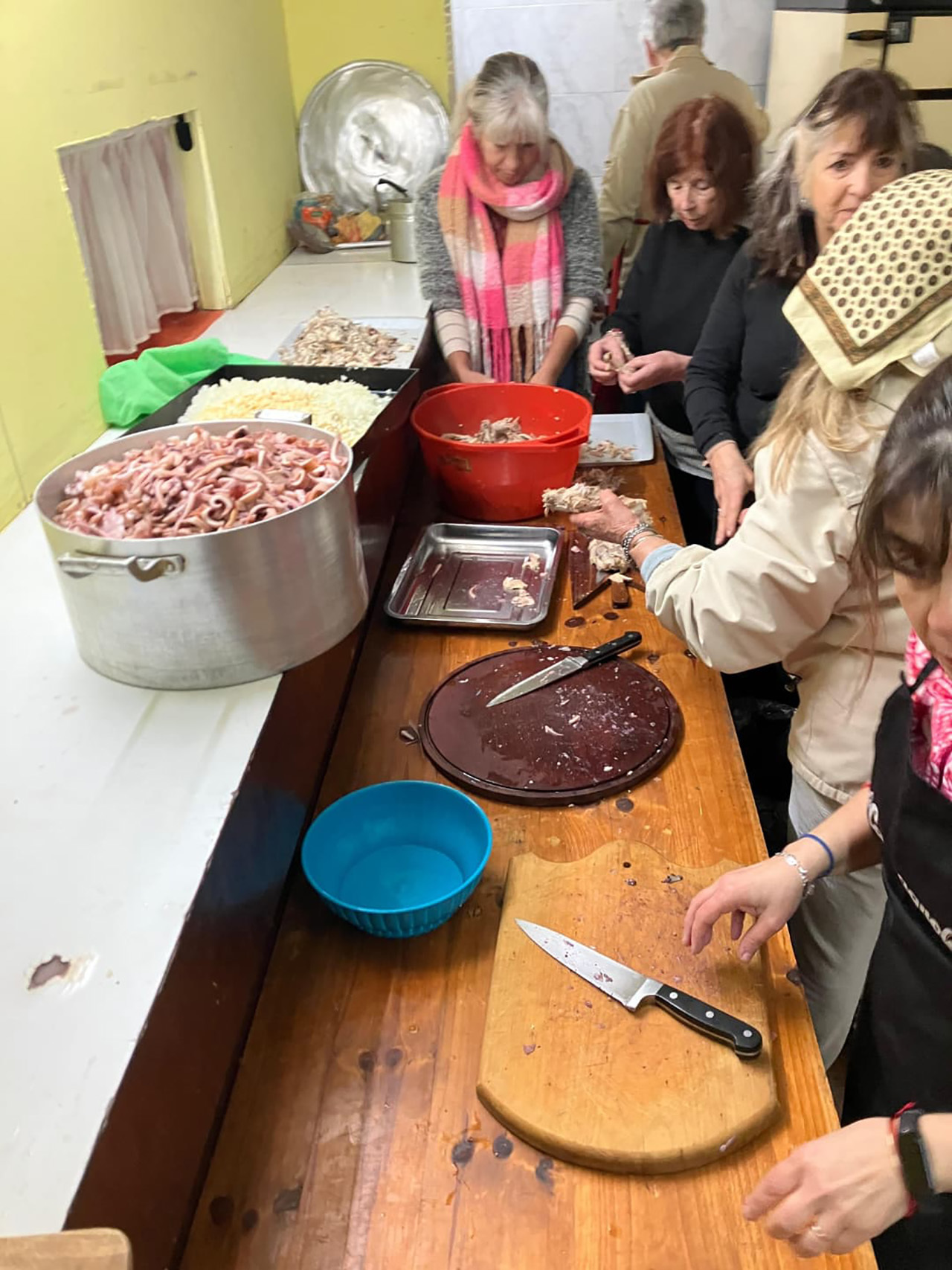La Asociación Español de Punta Alta realizó una nueva venta de porciones de pella para recaudar fondos para el Teatro