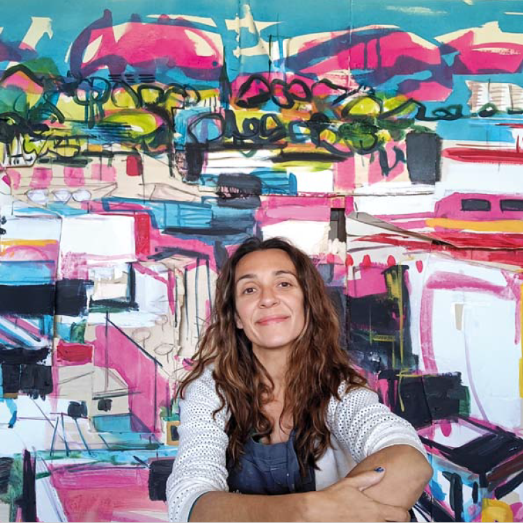 “Tánger forma parte de mi vida desde antes de que pueda recordar”, confiesa la artista. Su obra está atravesada por esa ciudad luminosa, presente en cada textura y en cada trazo: los tejados de la medina, la brisa del Estrecho, el rumor del mar y la nostalgia de las raíces. En sus lienzos conviven también otros paisajes –París, Madrid, Sri Lanka, Toulouse– que, como ella misma dice, confluyen en un mismo cauce: “Todos los ríos desembocan en Tánger”.