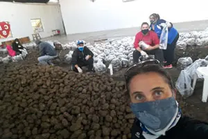 El jueves 28 de mayo, varios integrantes de la directiva concurrieron a las instalaciones del Club Sarmiento a embolsar papas, las cuales, a través del municipio, serán entregadas a quienes las necesitan.