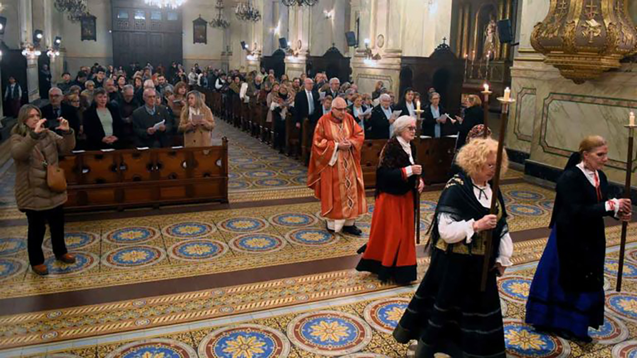 Posteriormente, la delegada Elvira Domínguez acompañó a la Asociación Uruguaya de Amigos del Camino de Santiago en una peregrinación hasta la Catedral Metropolitana, donde se celebró la misa en gallego, una tradición organizada por el Patronato de la Cultura Gallega desde el siglo pasado.