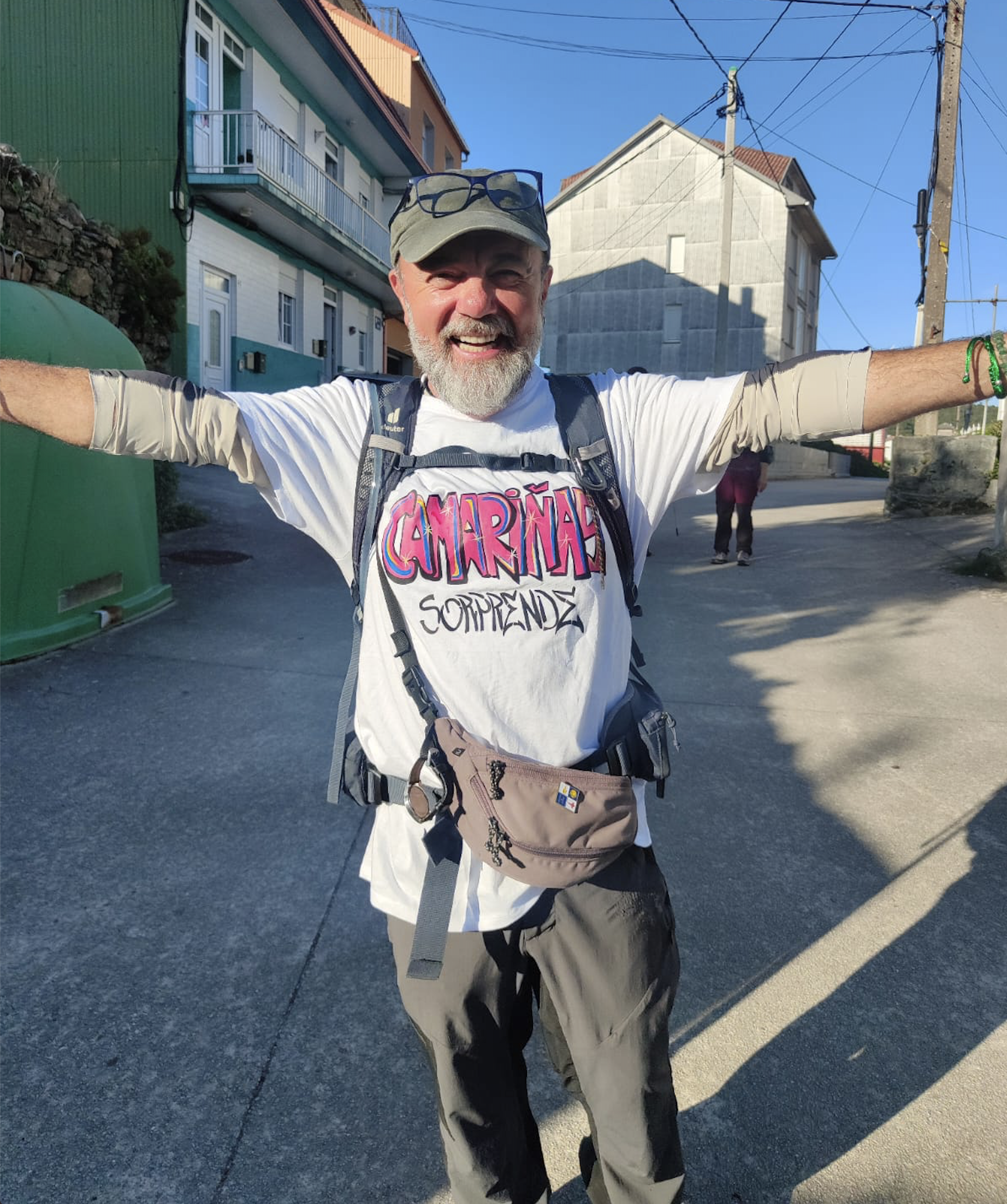 Manuel Tajes emprendió el Camino de Santiago desde Suiza, el país que lo acogió aquel 14 de agosto en el que, años atrás, comenzaba su historia en tierras extranjeras. Este mismo día fue el elegido para el inicio de su retorno a Galicia, un viaje simbólico y profundo que no solo recorría los cerca de dos mil trescientos kilómetros entre su hogar adoptivo y su tierra natal, sino también un camino hacia lo más hondo de su alma. Su cuerpo ha cambiado en el trayecto, despojándose de trece, quizá quince kilos, pero también su espíritu ha dejado peso en el camino: una mochila ligera y un corazón renovado, listo para abrazar el final de esta travesía con calma y esperanza. El peso de tantos silencios y pensamientos se fueron desvaneciendo poco a poco. Sin mayores contratiempos y sorprendentemente libre de ampollas, Manuel ha sentido cada tramo como una explosión de emociones, donde la esencia misma de la vida parecía renovarse. Su paso por cada región, por cada pueblo, por cada sendero, fue un despertar de emociones. En cada frontera cruzada y, sobre todo, en el momento en que pisó Galicia, Manuel sintió la fuerza de su tierra, como un suspiro profundo que le llenaba los pulmones de aire puro y paz. La emoción de estar en casa lo embargaba. La vieja sabiduría gallega de que “como en Galicia, en ningún sitio” se hacía carne en él: los paisajes, la comida, y la genética misma, lo conectaban con su esencia y lo hicieron recordar que, aunque su vida lo llevó lejos, su corazón siempre estuvo aquí, en cada rincón, en cada paisaje…
