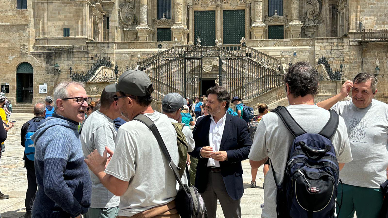 El secretario xeral de Emigración, Antonio Rodríguez Miranda, recibió a varios venezolanos de origen gallego que llegaron a la Praza do Obradoiro después de recorrer el Camino de Santiago.