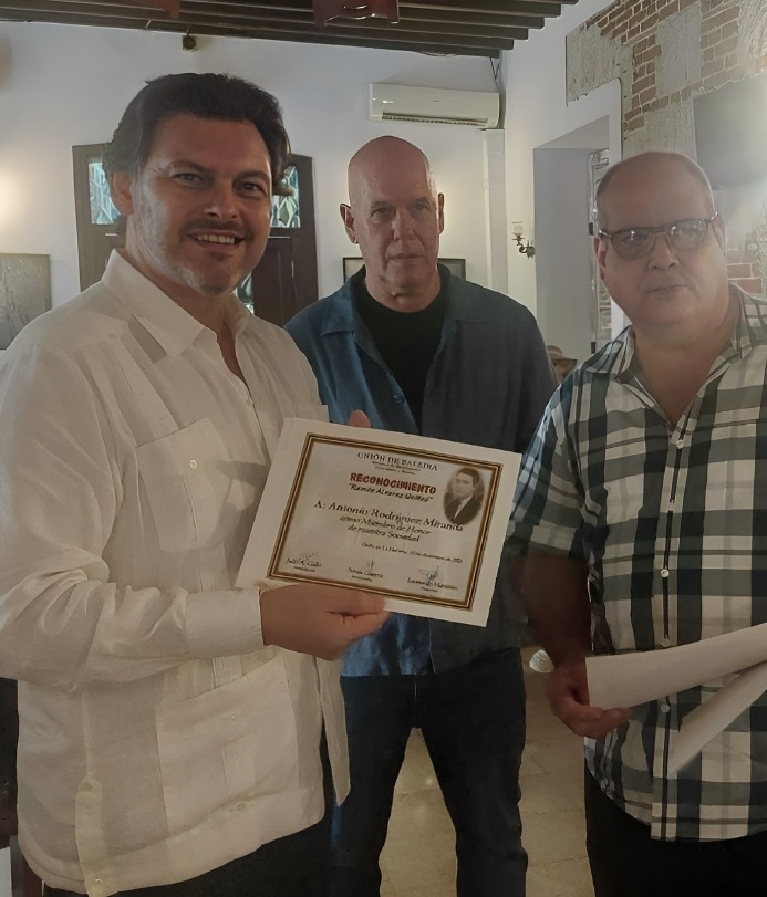 Para finalizar, Julio A. Gallo, presidente de la sociedad Unión de Baleira, Taboada, Chantada y Puerto Marín, hizo entrega de un diploma al secretario xeral de Emigración, nombrándolo Miembro de Honor de esta sociedad. Este reconocimiento refleja no sólo la estima y valoración de la labor del secretario por la diáspora gallega, sino también su compromiso y dedicación para la preservación y promoción de la cultura e identidad gallegas en tierras cubanas.