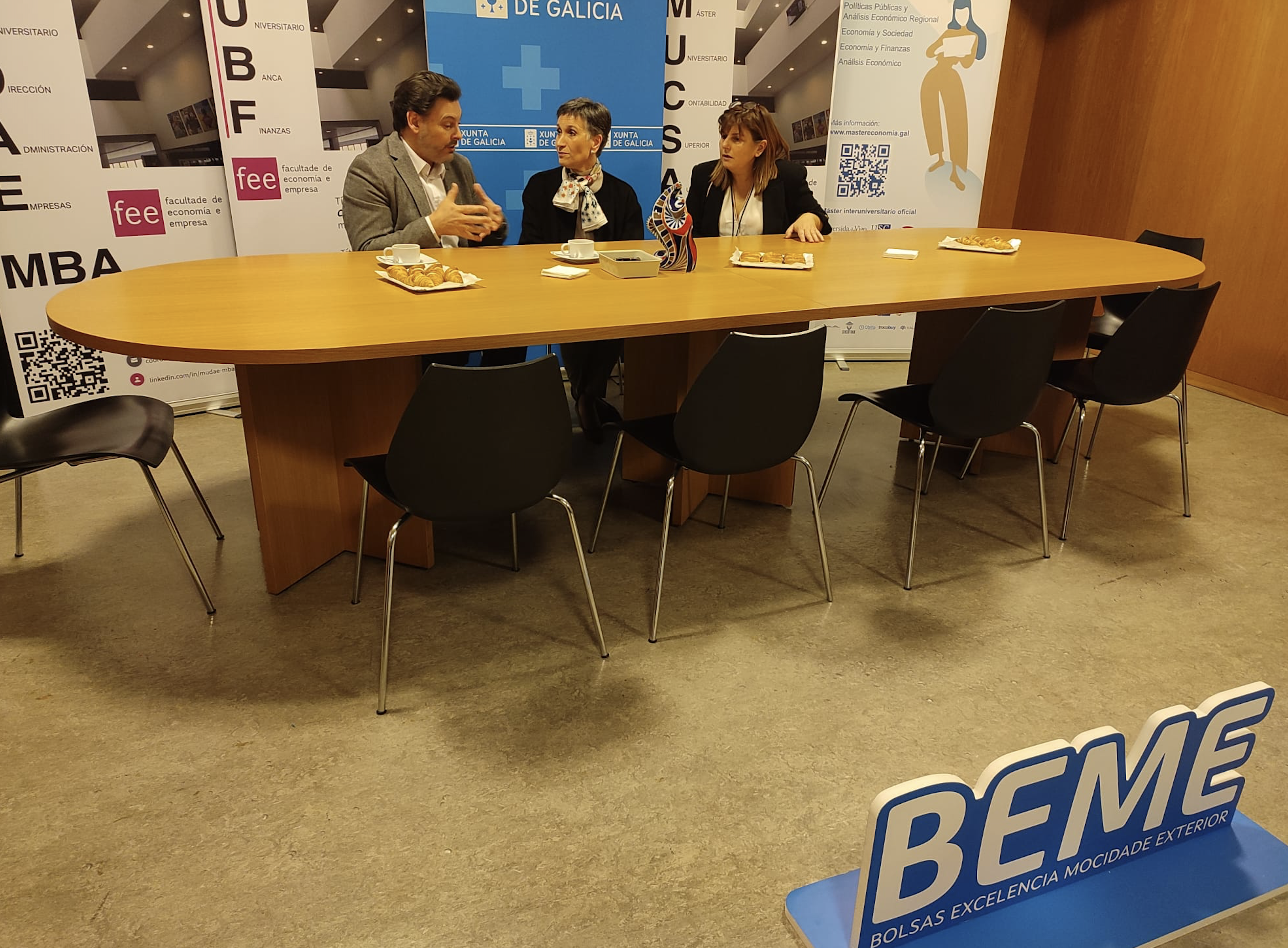 “Son alumnos muy motivados” y “a veces es difícil porque lo nuestro es contabilidad española y tienen que hacer un esfuerzo doble”, pero “los mejores alumnos que tiene el curso son los BEME”, destacó Maite Fernández, responsable del máster de Contabilidad Superior y Auditoría de Cuentas de la Universidad de A Coruña (UDC) en un encuentro en el que además de los becados, estuvieron la decana de la UDC, Carmen Socorro Lema, y el secretario xeral de Emigración, Antonio Rodríguez Miranda, quien habló con estos jóvenes sobre su experiencia con las becas y sus perspectivas de retorno.