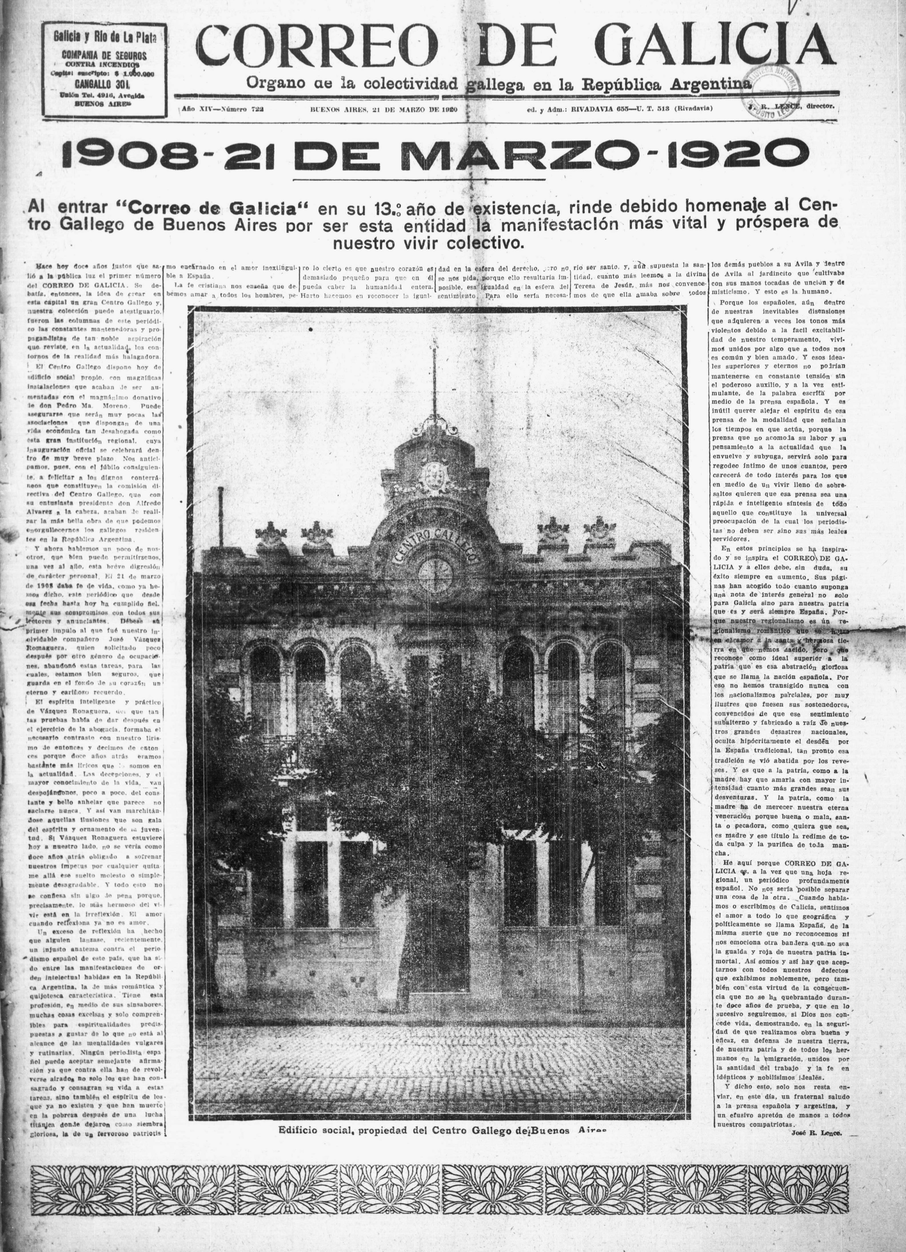El ‘Repertorio da prensa da emigración galega’, proyecto que mantiene el Arquivo da Emigración Galega (AEG) del Consello da Cultura Gallega (CCG), suma 86 nuevos números de la cabecera ‘Correo de Galicia’. El periódico, editado en Buenos Aires entre los años 1908 y 1945, fue el portavoz de la colectividad gallega emigrada en el Río de la Plata.
