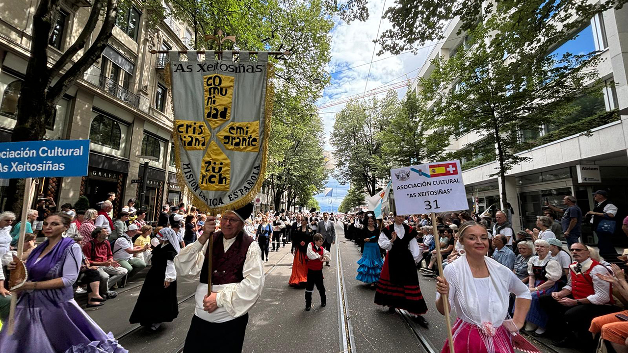 El secretario xeral de Emigración, Antonio Rodríguez Miranda, participó este domingo en un evento de carácter nacional en Suiza, que contó con la presencia de 54 naciones y cantones de todo el país, así como la participación de naciones vecinas como Austria, Francia e Italia. Este evento, que se extendió a lo largo de tres días, tuvo su acto principal con un desfile por las calles de Zúrich, transmitido en directo por la televisión suiza.